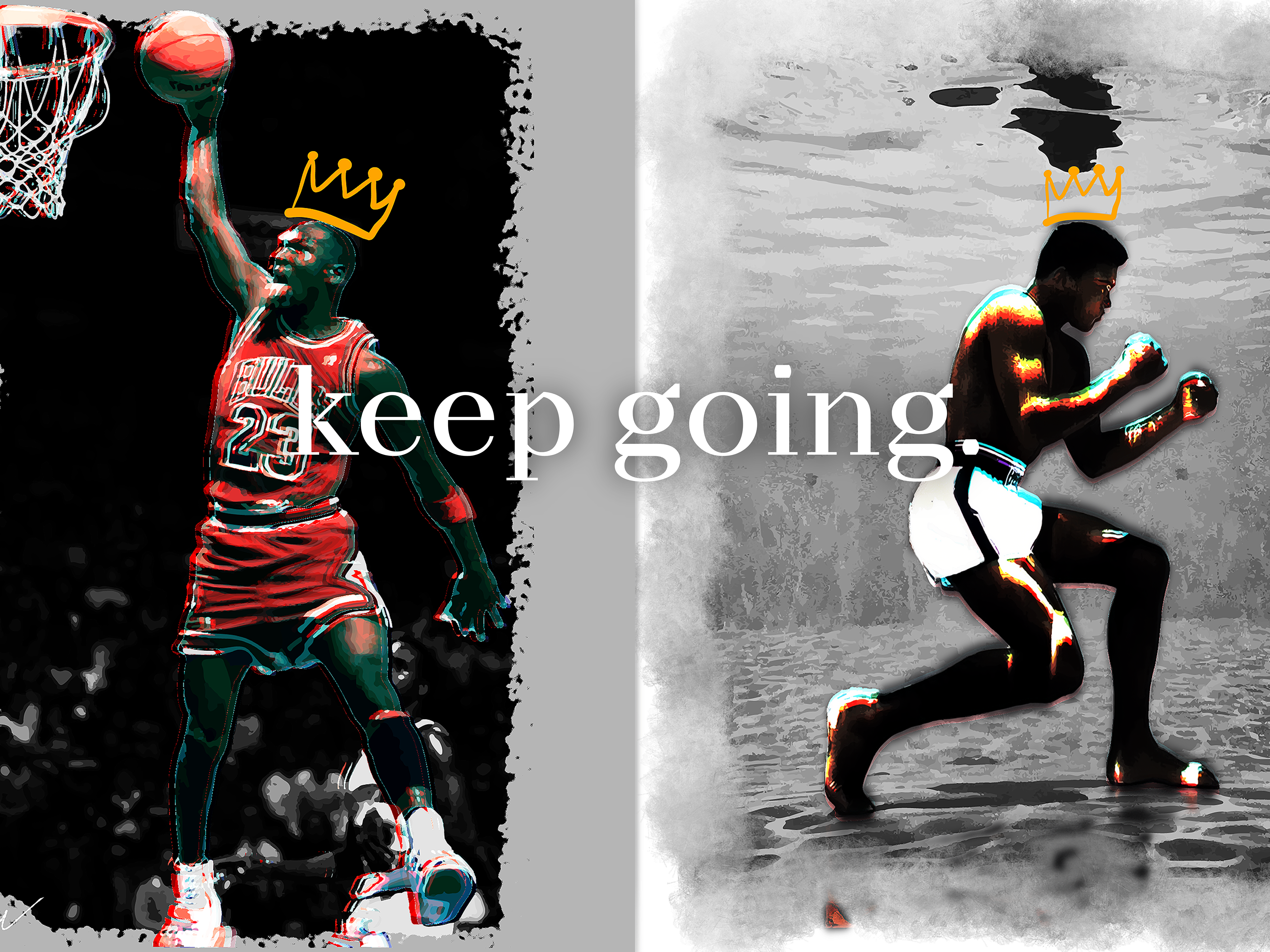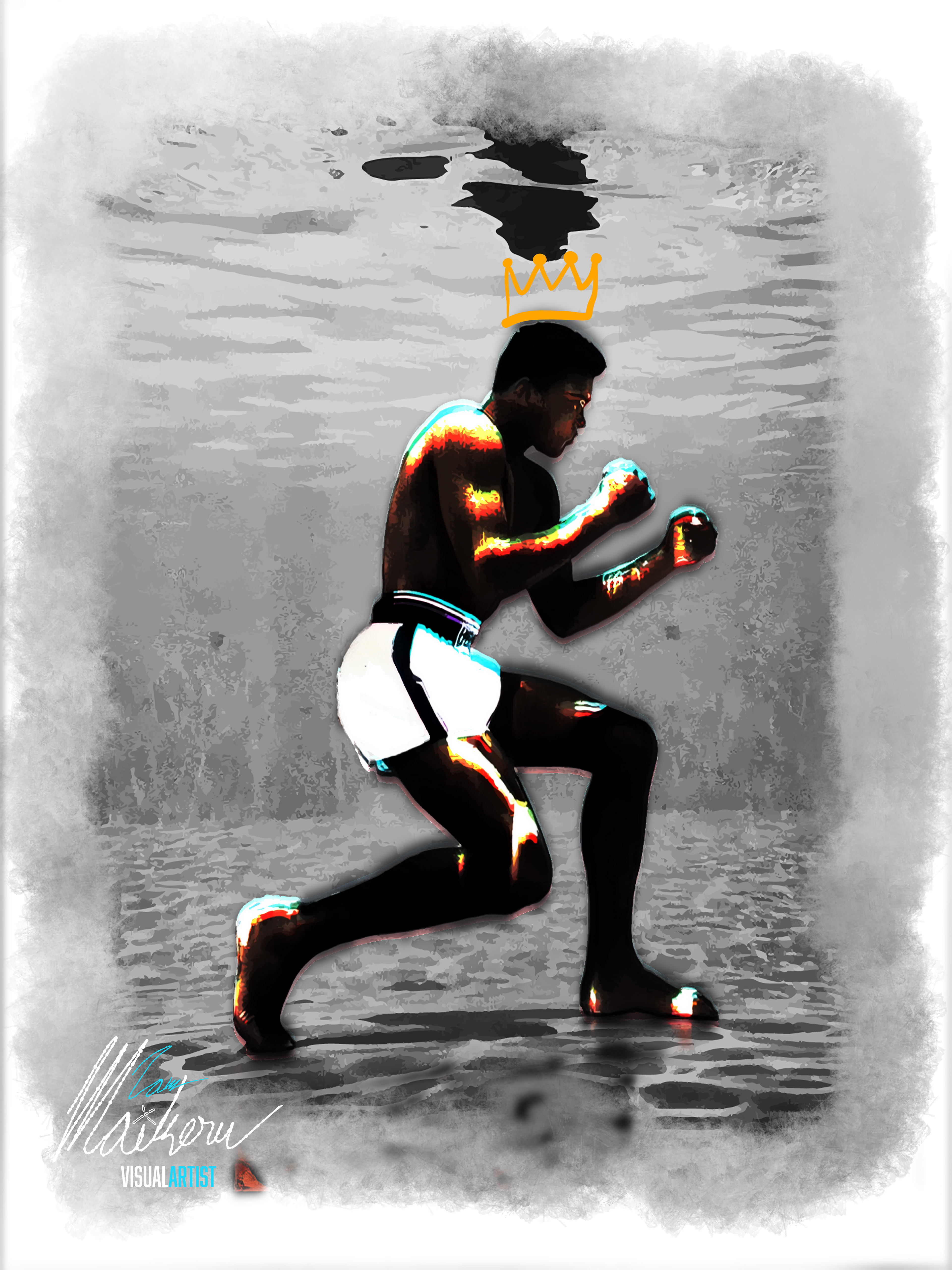 CROWNED MOMENTS is a two-piece digital poster series celebrating the split-second where legends become mythology. One image captures Michael Jordan suspended at the rim—frozen in that familiar gravity-defying rise. The other frames Muhammad Ali in motion, coiled and locked in, a portrait of discipline right before impact. I crowned both figures as a symbol of mastery: not fame, but earned dominance.