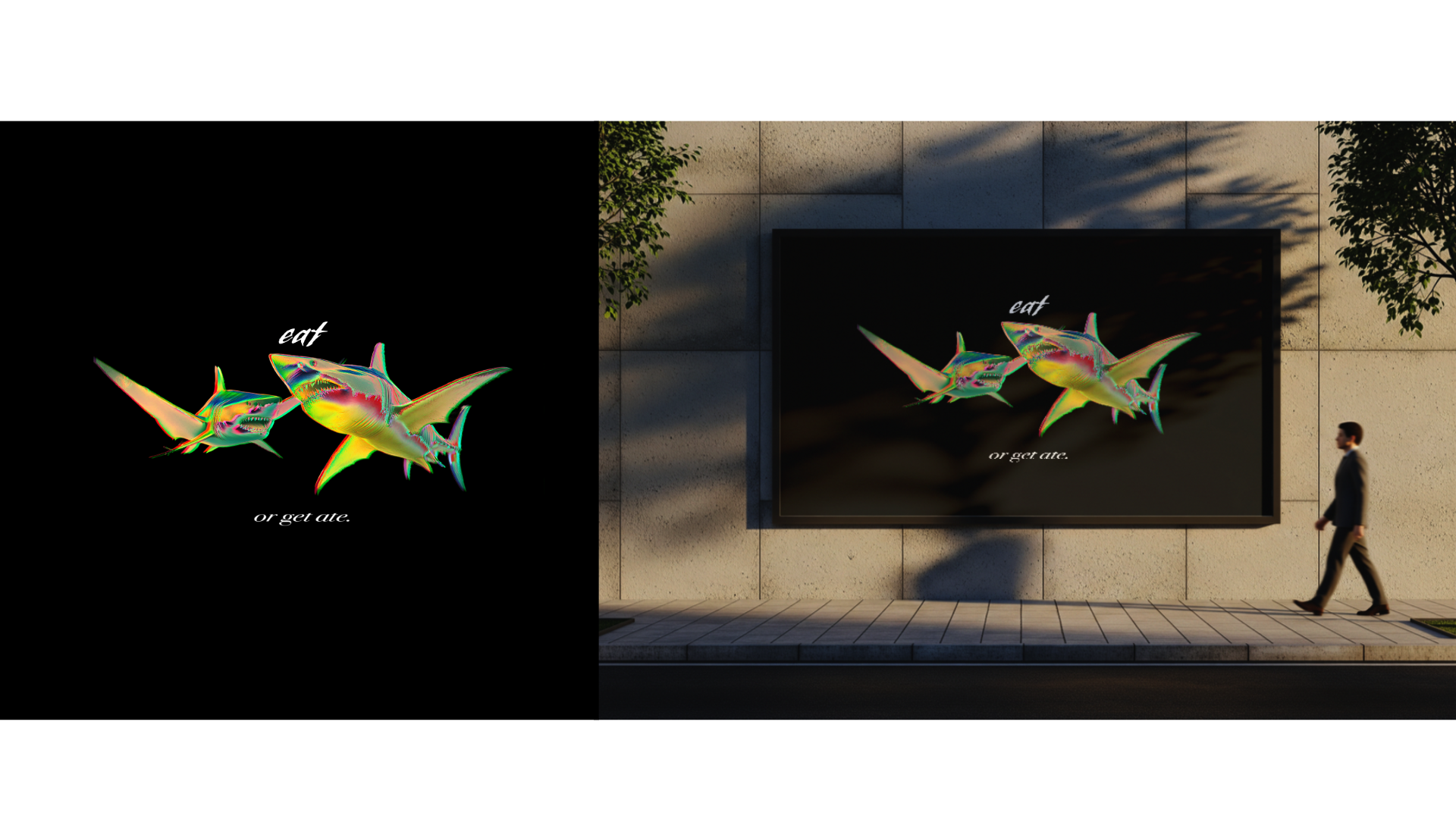 EAT / OR GET ATE. (Glitch Poster → Billboard Mockup)