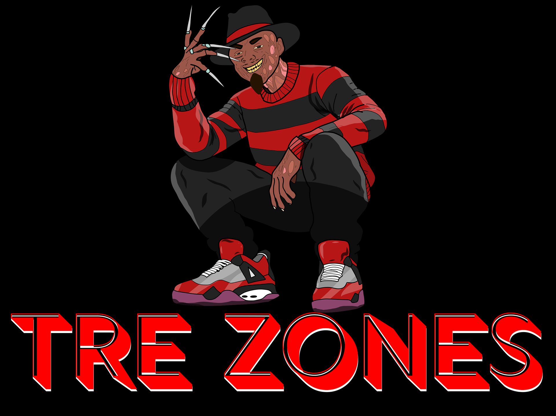 Mascot Logo Design commissioned by VA-Rapper "Trey Zones". His request was that the logo have "Nightmare On Elm Street" vibes, with his likeness.